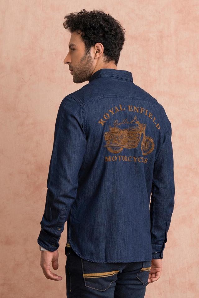 ROYAL ENFIELD INDIGO CO ORDINATE EMBOSSED SHIRT