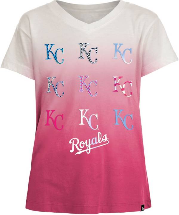 New Era Girl s Kansas City Royals Pink Dipdye V Neck T Shirt