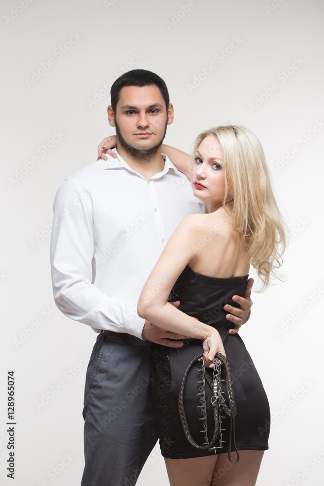 Stockfoto sexy couple. girl holding a leash. dog collar Adobe Stock