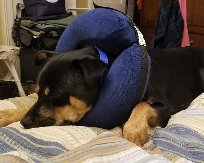 Spayed yesterday and HATES the cone of shame so meet the travel