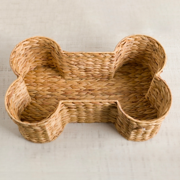 Bone Dry Pet Storage Collection Bone Shape Hyacinth Toy Basket Natural Medium