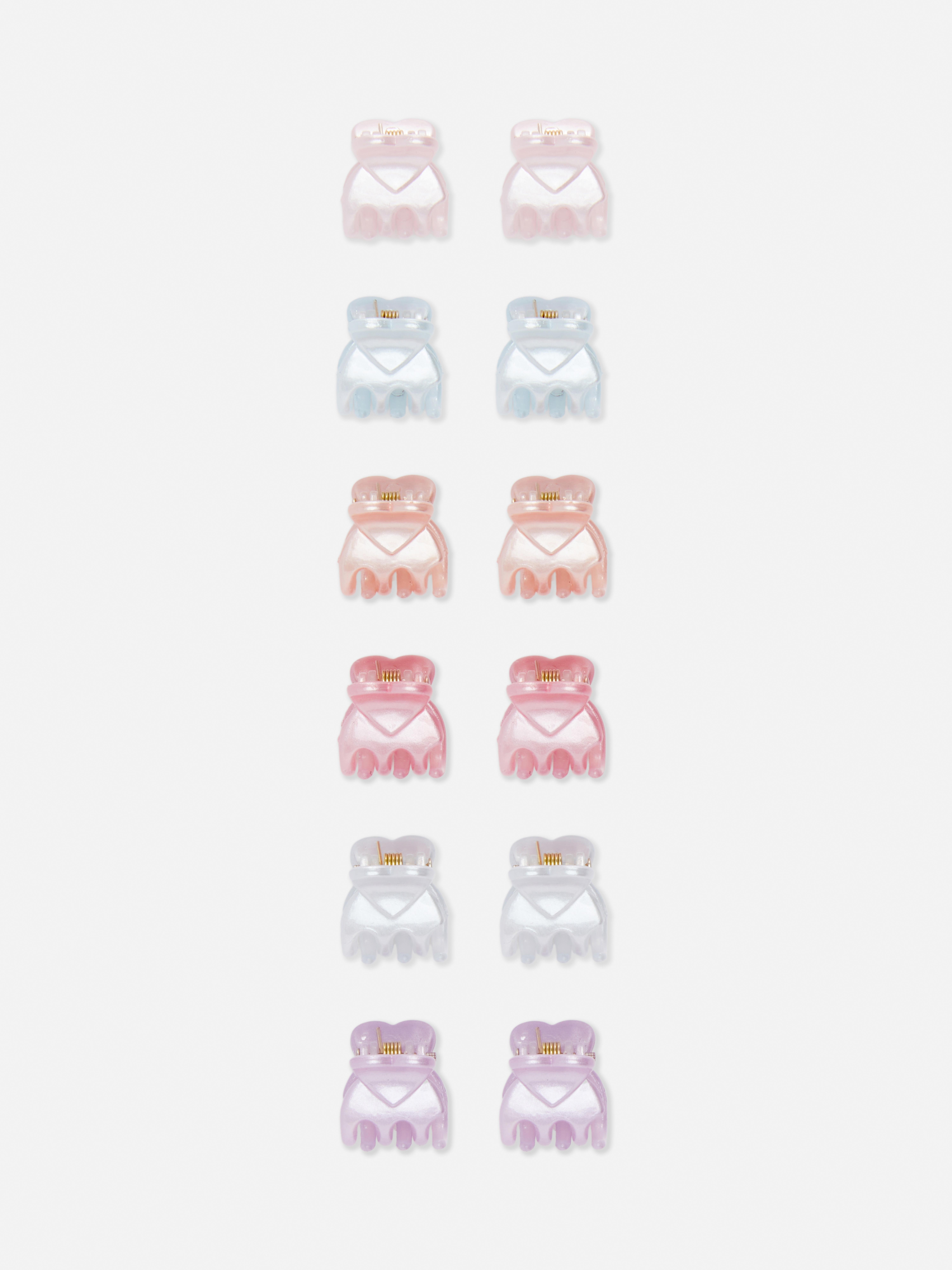 12 Pack Mini Heart Bulldog Hair Clips Primark