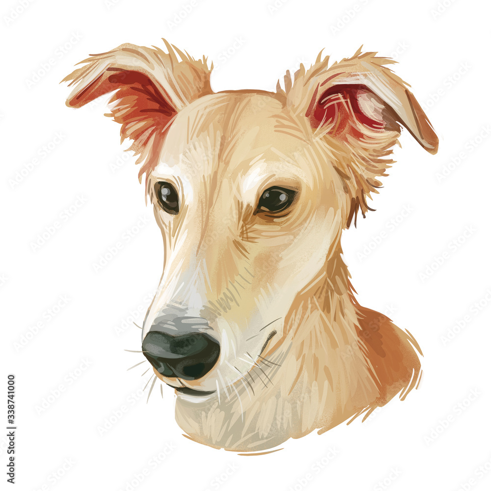 Longhaired Whippet Dog isolated digital art illustration. Hand