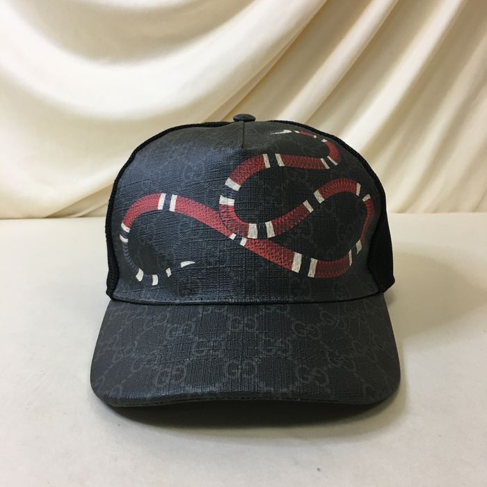 Kingsnake print gg clearance supreme baseball hat, Gucci Gucci Black Kingsnake print GG Supreme baseball cap Size L clearance
