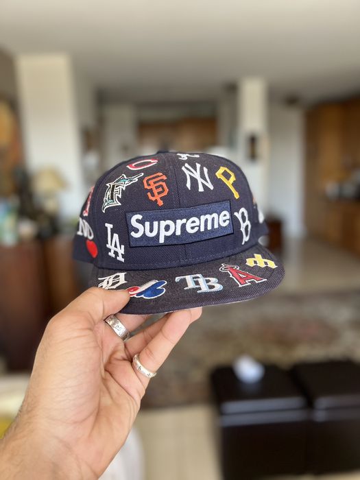 Supreme MLB Multi Logo Hat Size 7 1 2 Navy Authenticated Stock X
