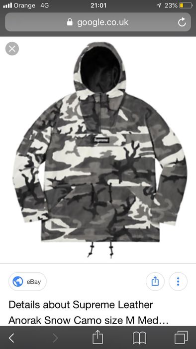 Supreme leather anorak clearance snow camo, Supreme Supreme Leather Anorak Snow Camo Grailed clearance