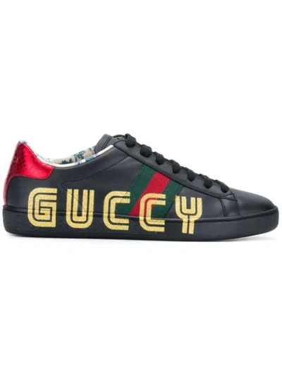 Gucci New Ace Guccy Leather Trainer In Black ModeSens