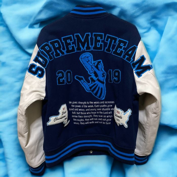 Supreme Team Varsity Jacket M Navy FW19 Grailed