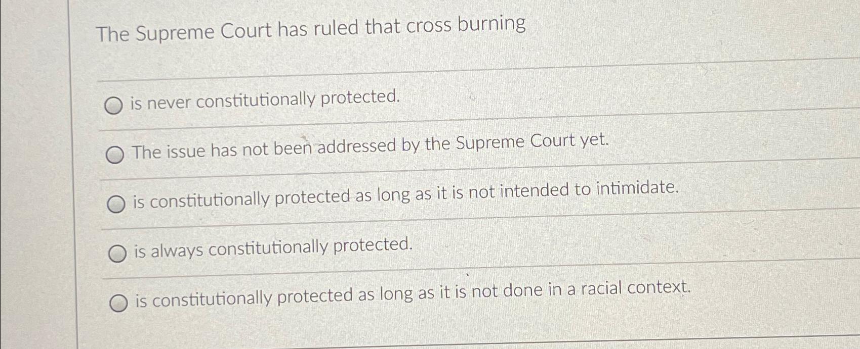 Solved The Supreme Court has ruled that cross burningis Chegg