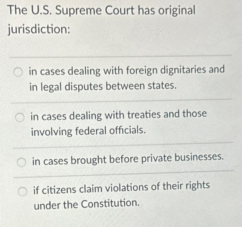 Solved The U.S. Supreme Court has original jurisdiction in