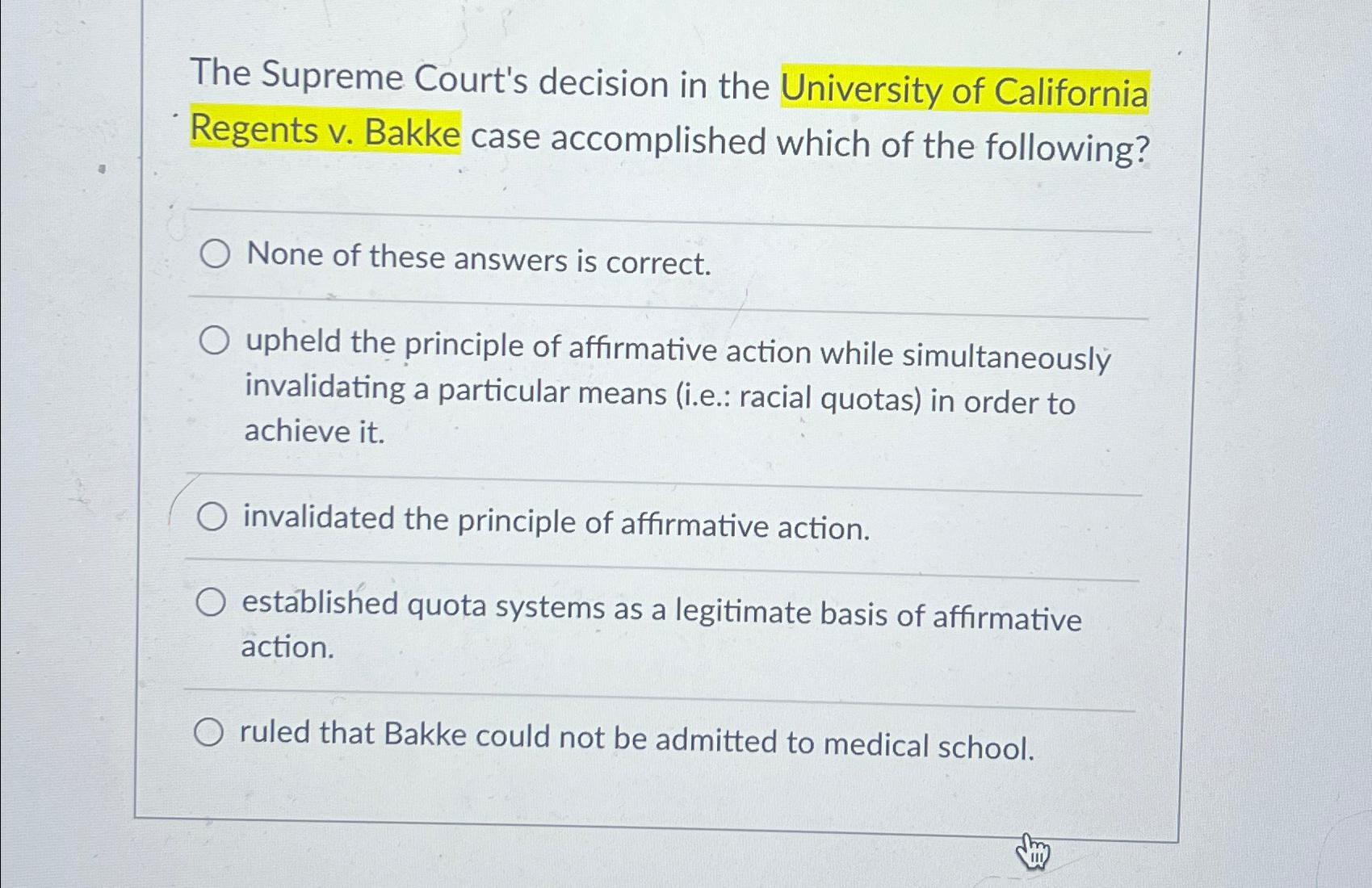 The supreme court ruled clearance in the bakke case that, Solved The Supreme Court s decision in the University of Chegg clearance