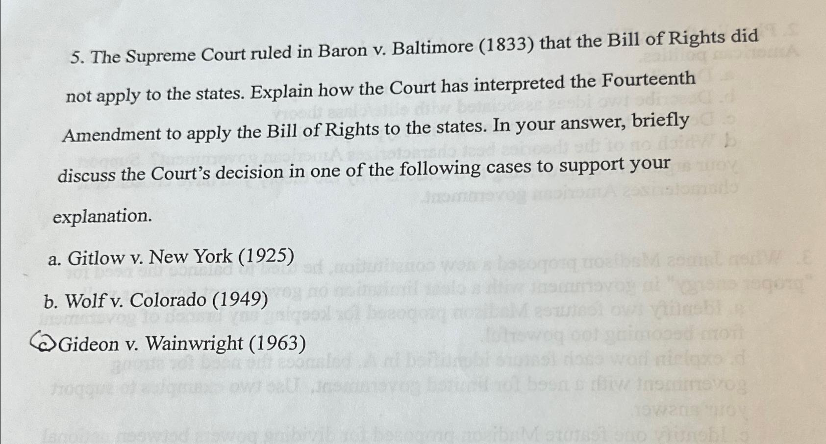 Solved The Supreme Court ruled in Baron v. Baltimore 1833