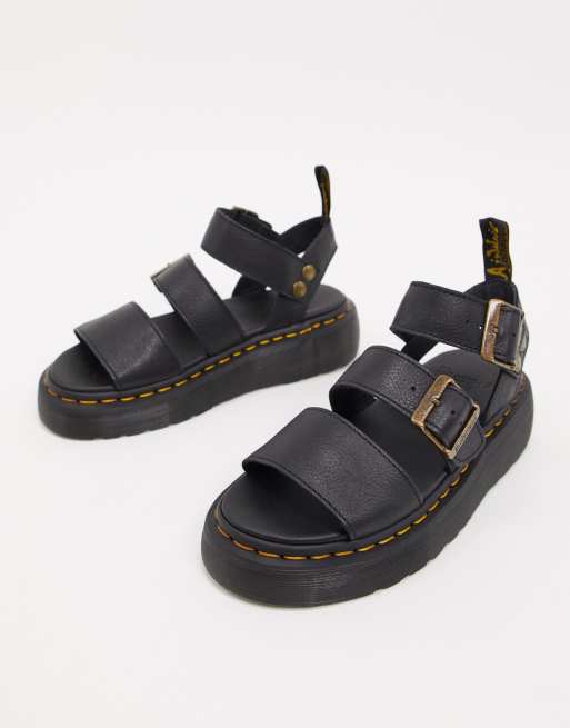 Dr martens gryphon quad leather chunky clearance sandals with gold hardware in black