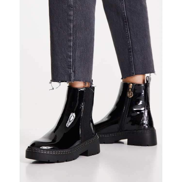River island chunky clearance patent ankle boot, Black patent chunky Chelsea boots clearance