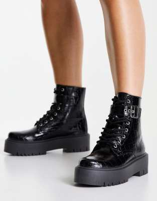 Black croc chunky clearance boots, Miss Selfridge Arnot Black Croc Chunky Boots ModeSens clearance