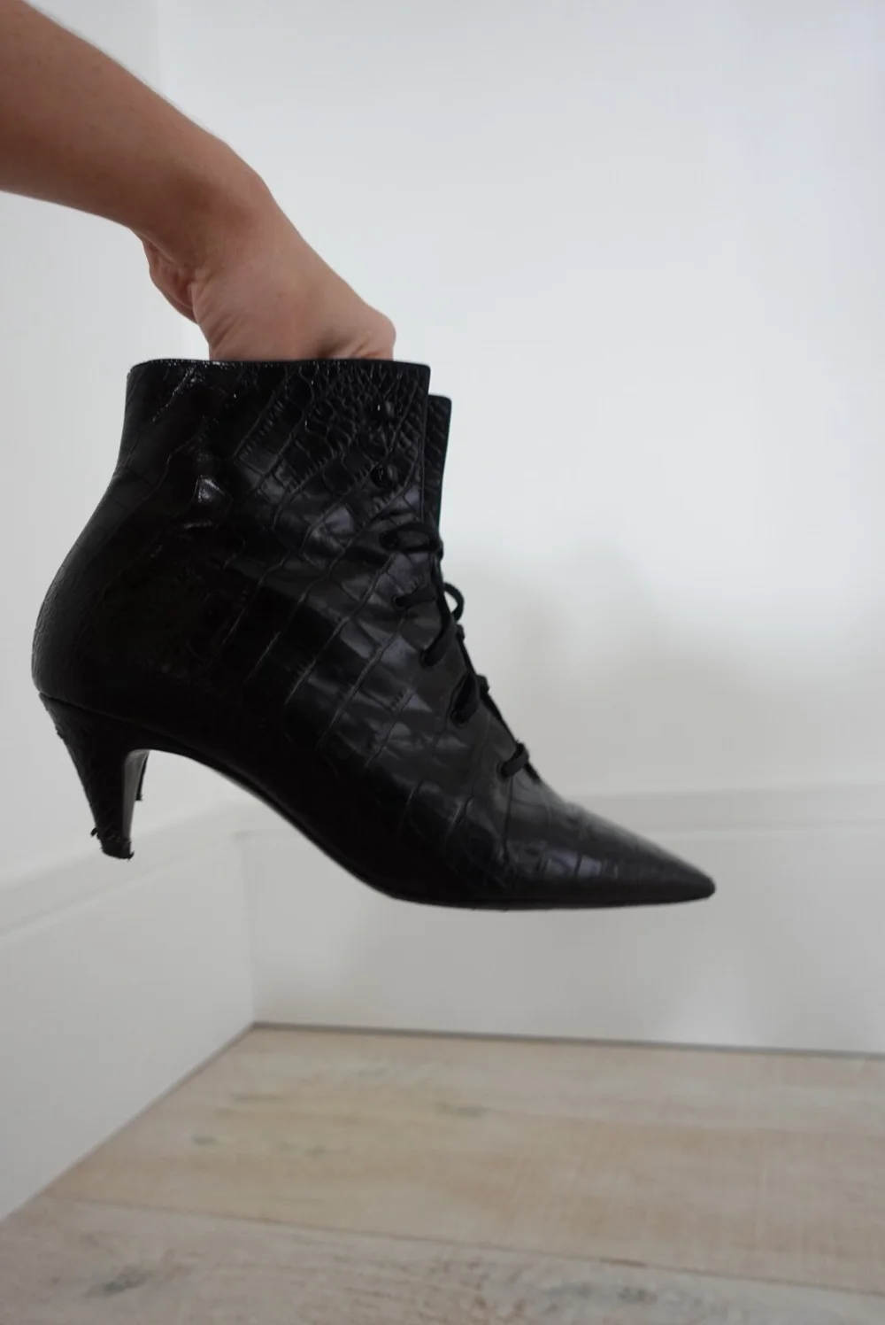 Saint laurent kiki clearance ankle boots, YSL Black Croc Ankle Boots clothesarefriends clearance