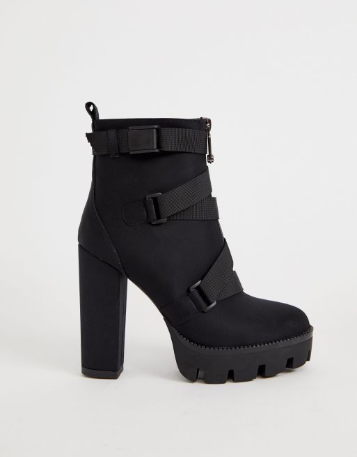 Simmi London Jemma black lycra chunky heeled ankle boots