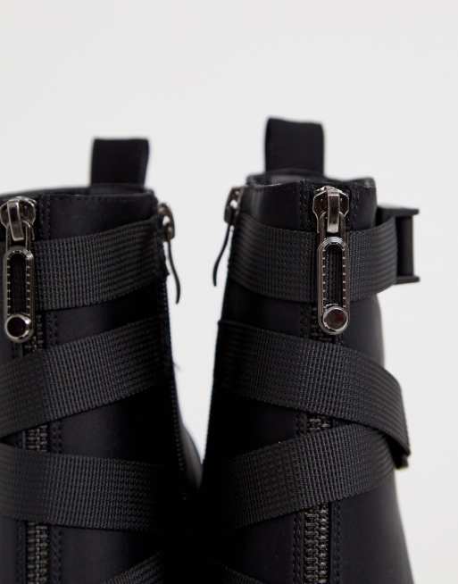 Women s Platform Chunky High Heel Boots Black Zipper Round Toe Buckle Belt Shoes Non Slip Ankle Boots