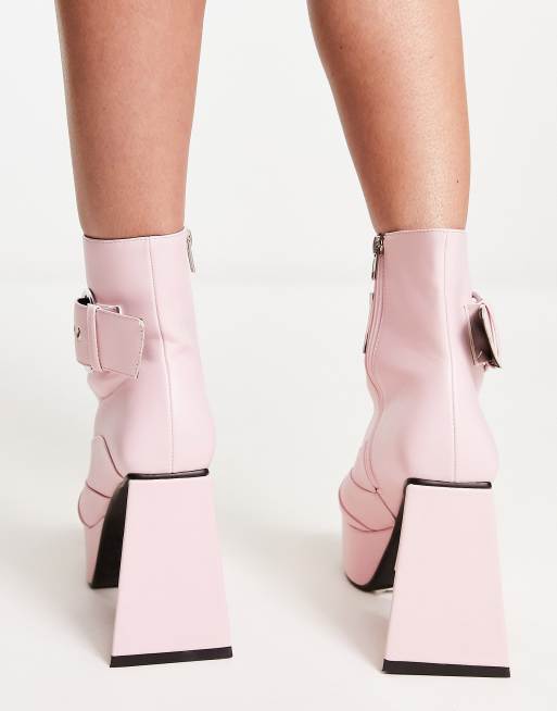Lamoda Flight Mode platform ankle boots with buckle detail in pink