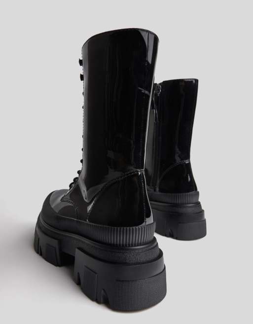 ASOS DESIGN Acoustic chunky lace up boots in black patent