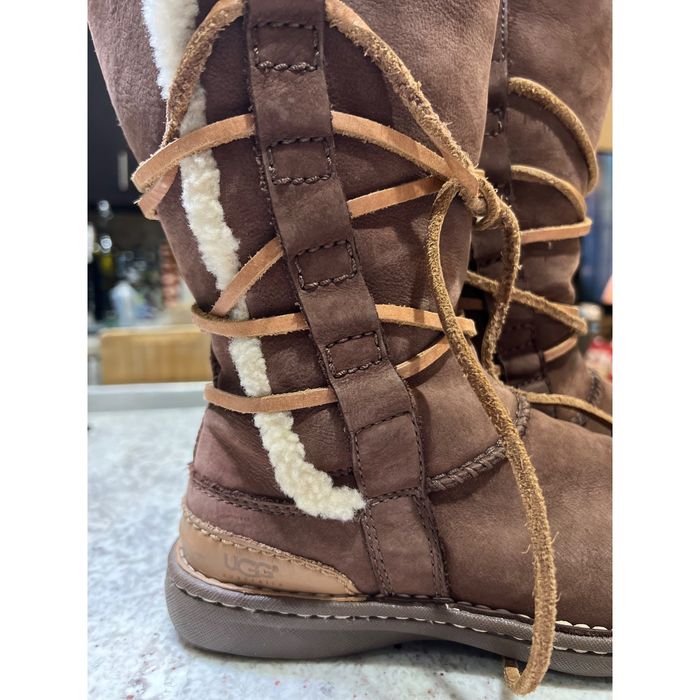 Ugg clearance catalina boots, Ugg 9 Tall Boots 1634 CATALINA Brown Leather Sheepskin Lace Up Wrap Around clearance