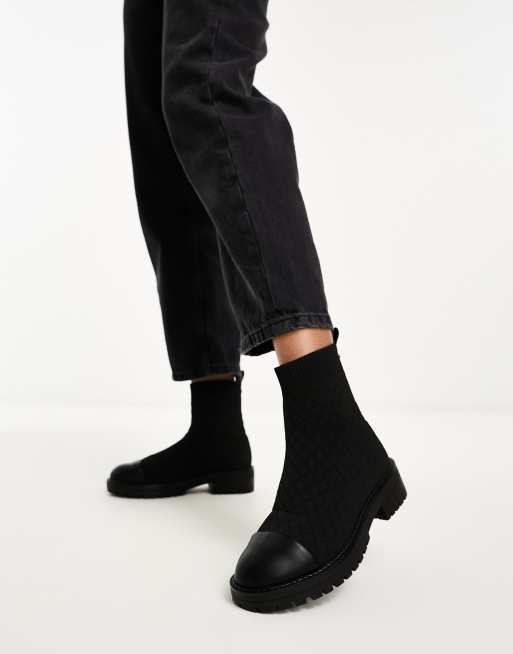 RAID Wide Fit Annelien square toe sock boots in black excusive to ASOS