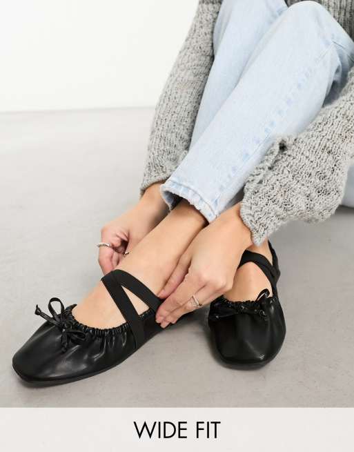 ASOS DESIGN Wide Fit Los Angeles ruched ballet flats with elastic