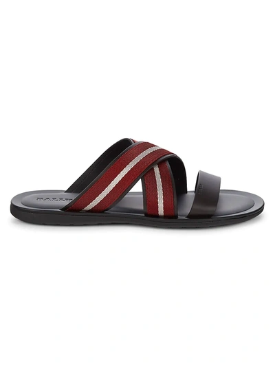Bally Men s Sasha Leather Textile Striped Slides In Brown ModeSens