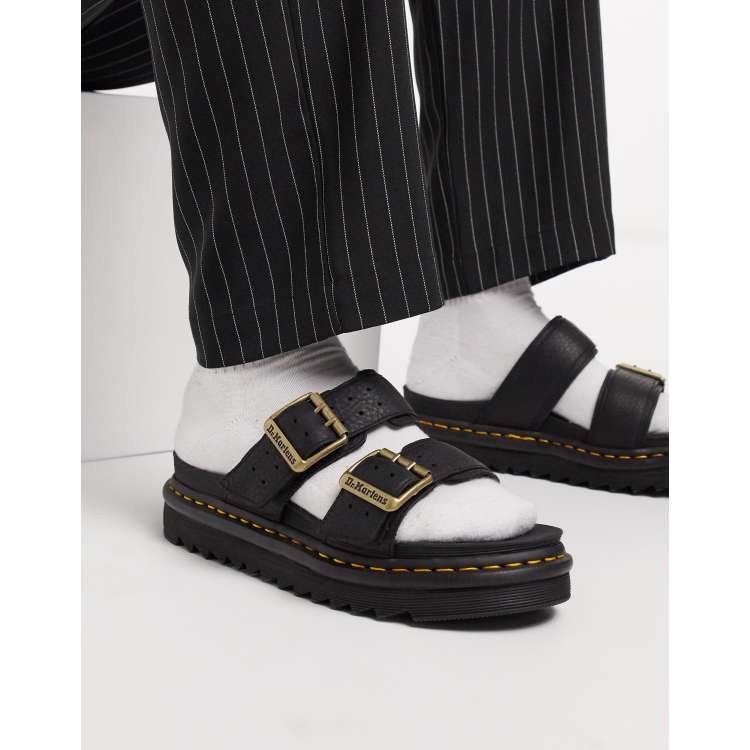 Myles Brando Leather Buckle Slide Sandals in Black Dr. Martens