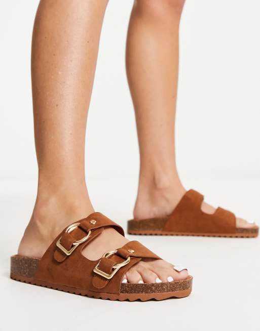 Double clearance band sandals, South Beach double band sandal with buckle in tan ASOS clearance