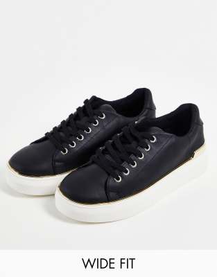London Rebel Wide Fit Lace Up Metal Trim Sneakers In Black ModeSens