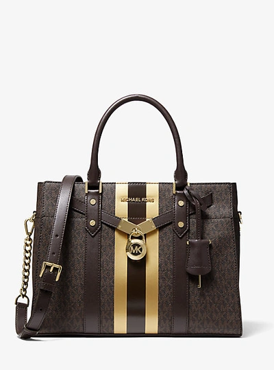 Michael Kors Nouveau Hamilton Large Logo Metallic Stripe Satchel