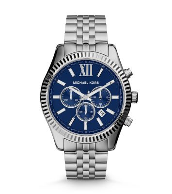 Michael Kors Lexington Chronograph Blue Dial Silver Steel Strap