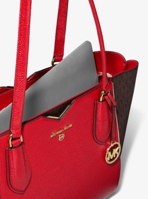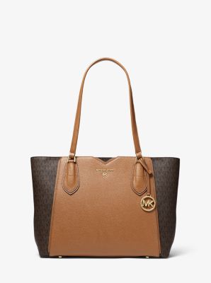 Mae Medium Pebbled Leather and Logo Tote Bag Michael Kors