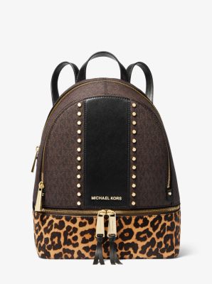 Rhea Medium Studded Logo and Leopard Calf Hair Backpack Michael Kors