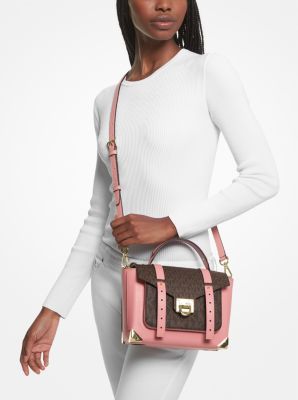 Manhattan Medium Leather and Logo Satchel Michael Kors