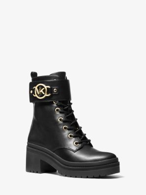Khloe leather and clearance logo combat boot, Michael Kors Khloe Boot Womens Sz 8.5 Black Leather Combat Lace Up clearance