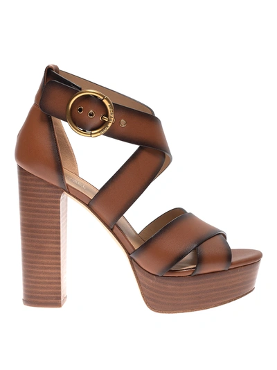 Michael Kors Leia Leather Platform Sandals In Luggage ModeSens