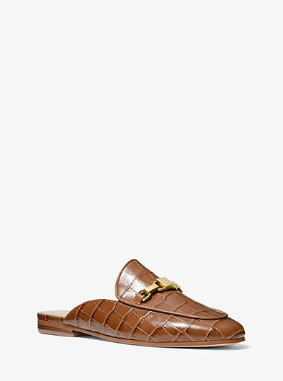 Michael Kors Charlton Crocodile embossed Leather Slide In Brown