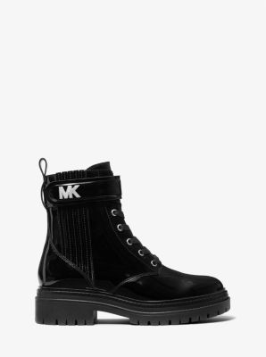 Michael Kors Women s Black Patent Leather Boots w LOGO Backstrap Size 7