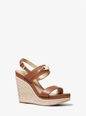 Michael Kors Brown Josephine Leather Sandal Wedge