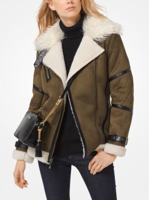 Michael kors shearling clearance jacket, Michael Kors Suede Faux Shearling Jacket Size P MSRS 295 clearance