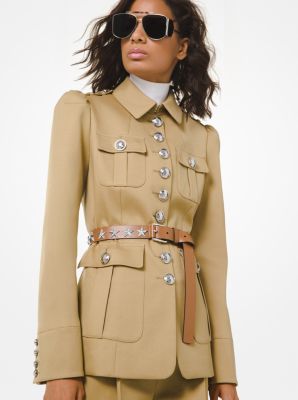 Michael Kors Army Green Brass Studded Zip Front Jacket Blazer