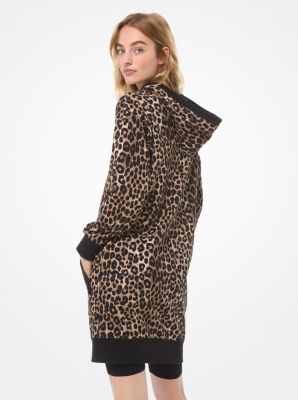 Michael kors leopard clearance hoodie dress, Leopard Print Cotton Terry Hoodie Dress Michael Kors clearance