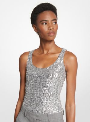 MICHAEL KORS WOMENS T SHIRT TOP GREY MK LOGO SILVER SEQUINS NEW SZ M eBay