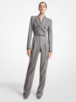 Crystal Pinstripe Flannel Jumpsuit Michael Kors