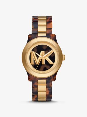 Runway Gold Tone and Tortoiseshell Acetate Watch Michael Kors