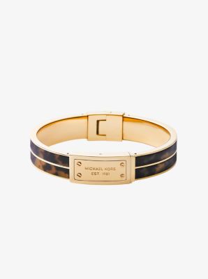 Logo Plaque Tortoise Acetate and Gold Tone Bangle Michael Kors