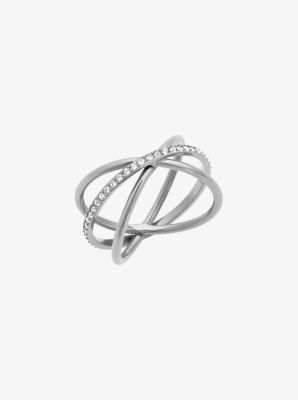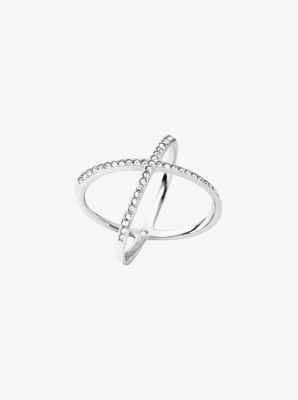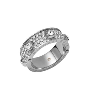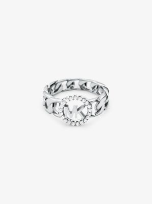 Michael kors pavé clearance silver tone ring, Precious Metal Plated Sterling Silver Pav Logo Curb Link Ring clearance