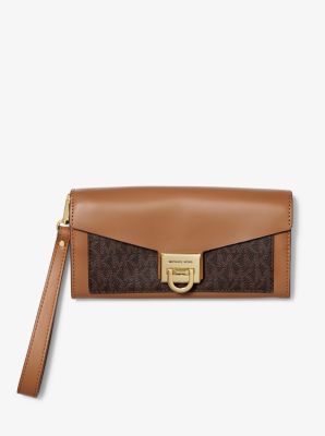 Manhattan Large Viola Leather and Logo Clutch Michael Kors